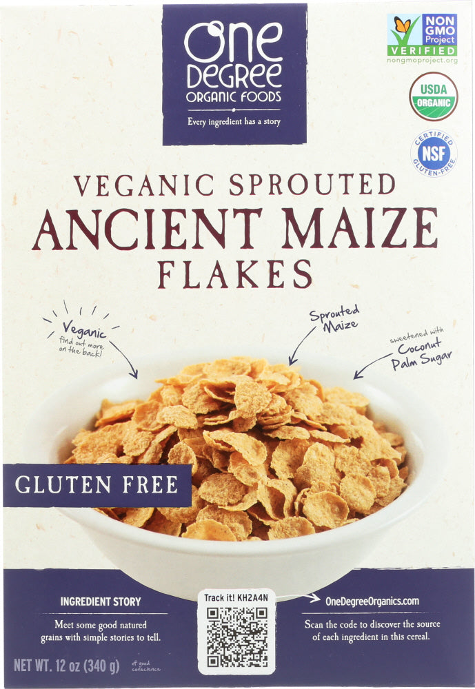 ONE DEGREE ORGANIC FOODS: Veganic Sprouted Ancient Maize Flakes, 12 oz
