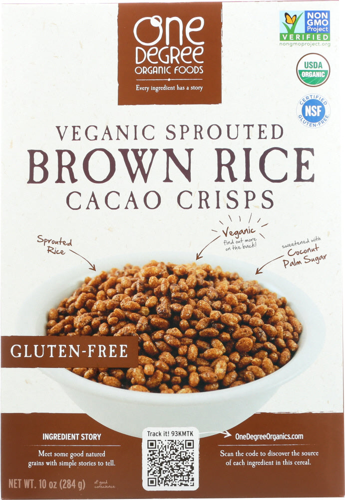 ONE DEGREE ORGANIC FOODS: Veganic Sprouted Brown Rice Cacao Crisps, 10 oz