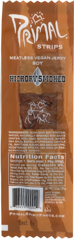 PRIMAL STRIPS: Meatless Vegan Jerky Hickory Smoke, 1 oz