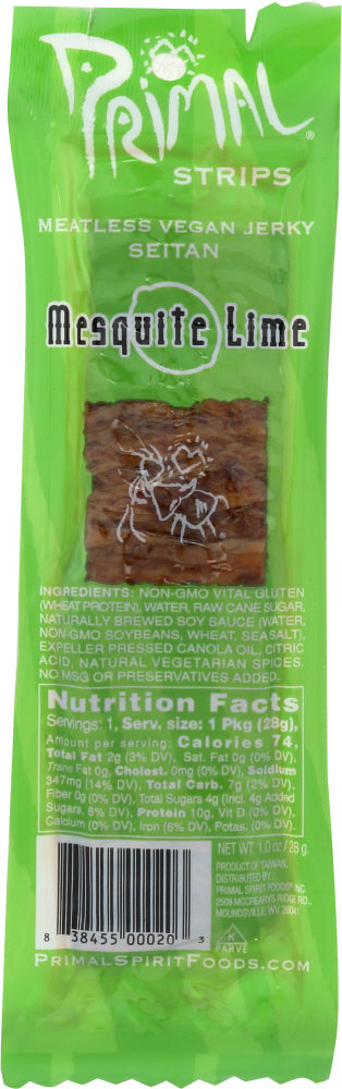 PRIMAL STRIPS: Meatless Vegan Jerky Mesquite Lime, 1 Oz
